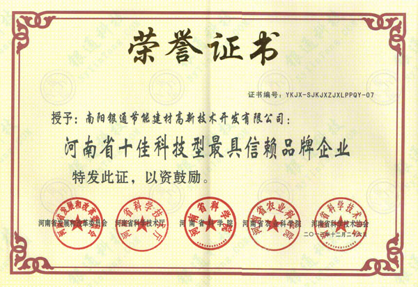 授予:南陽銀通節(jié)能建材高新技術(shù)開發(fā)有限公司: