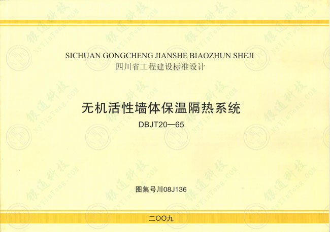 四川省工程建設(shè)標(biāo)準(zhǔn)設(shè)計《無機活性墻體保溫隔熱系統(tǒng)》統(tǒng)一編號:DBJT20-65 圖集號:川08J136,批準(zhǔn)部門:四川省建設(shè)廳,主編單位:四川時代建筑設(shè)計有限公司,協(xié)編單位:南陽銀通節(jié)能建材高新技術(shù)開發(fā)有限公司 南陽市銀達(dá)新型墻體材料開發(fā)有限公司