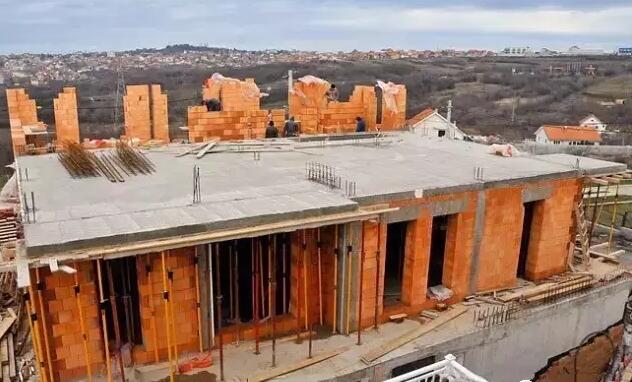 這些燒結(jié)空心磚是疊放在預(yù)制結(jié)構(gòu)梁上。在鋪設(shè)之前還是需要在樓層位置搭設(shè)鋼筋籠,增加抗拉強(qiáng)度。全部鋪設(shè)完后再澆筑一層混凝土。