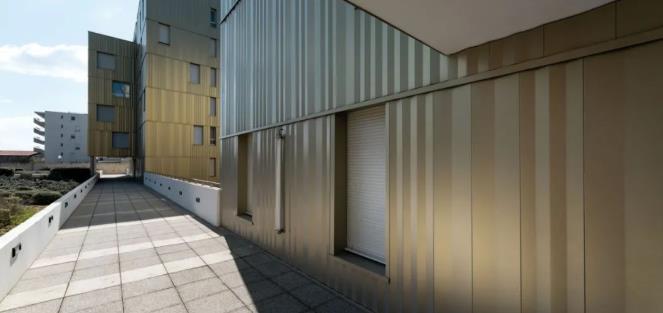 實心鋁外墻產(chǎn)品常見于3mm厚的面板,并在表面覆以裝飾性涂層。實心鋁板常被切割成特定的尺寸,且對邊緣處通過軋折處理,使其便于連接固定。