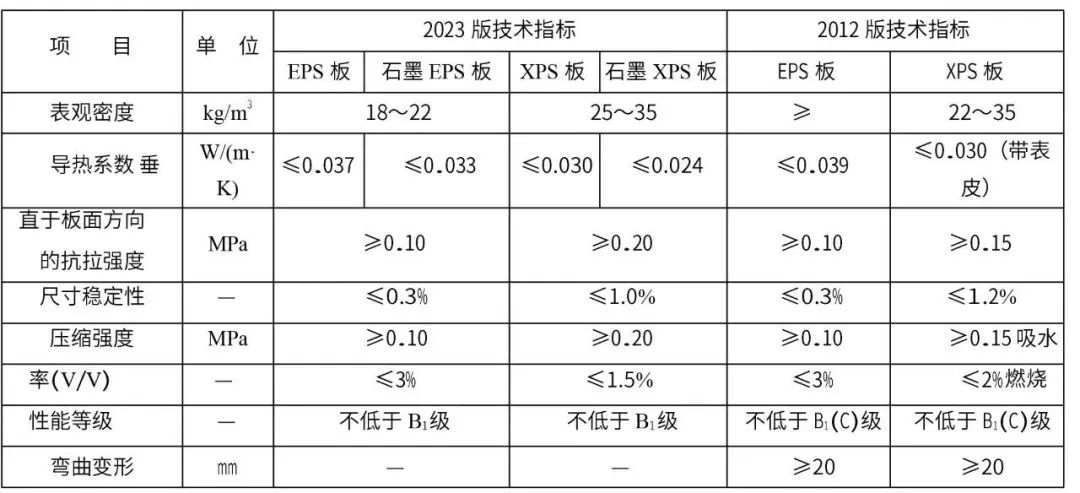 2023 版中增加了硬泡聚氨酯板、酚醛泡沫板、真空絕熱板三種保溫板,其性能指標分別符合現 行行業(yè)標準《硬泡聚氨酯板薄抹灰外墻外保溫系統(tǒng)材料》JG/T 420、《酚醛泡沫板薄抹灰外墻外保溫 系統(tǒng)材料》JG/T 515、《建筑用真空絕熱板》JG/T 438 的規(guī)定。