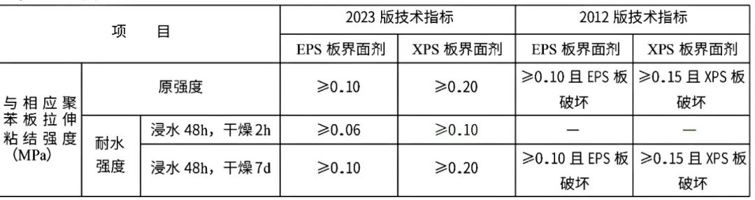 2023 版中取消了聚苯板膠粘劑、巖棉板膠粘劑,增加了粘貼硬泡聚氨酯板用膠粘劑、粘貼酚醛 泡沫板用膠粘劑,其性能指標分別符合現行行業(yè)標準《硬泡聚氨酯板薄抹灰外墻外保溫系統(tǒng)材料》 JG/T 420、《酚醛泡沫板薄抹灰外墻外保溫系統(tǒng)材料》JG/T 515 的規(guī)定。