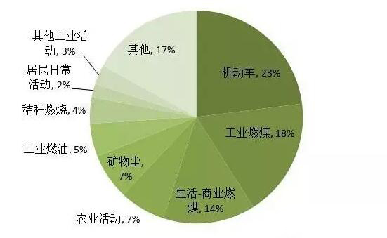 分析顯示,北京細(xì)顆粒物PM2.5 中大多是直徑小于1微米的超細(xì)顆粒物PM1,它的來(lái)源非常復(fù)雜。其中來(lái)自工業(yè)燃煤和生活燃煤的排放各貢獻(xiàn)約18%和14%、機(jī)動(dòng)車貢獻(xiàn)23%、居民日常生活及其他活動(dòng)占了約19%,剩下的是其他人類活動(dòng)和自然界產(chǎn)生的。