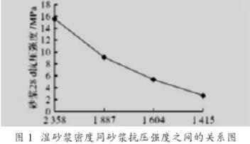用濕砂漿密度表示建筑砂漿中的空氣含量,用灰砂質(zhì)量比表示砂漿中的水泥含量,濕砂漿密度同砂漿抗壓強度之間的關系圖如圖1所示。
