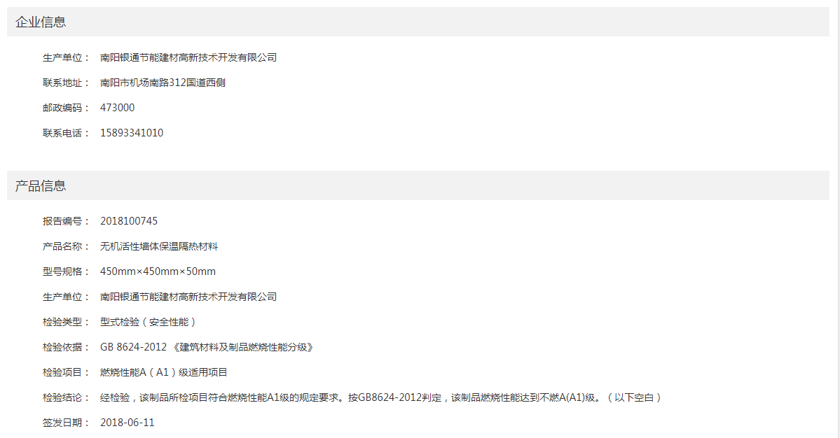 答:國家防火建筑材料質(zhì)量檢驗(yàn)監(jiān)督中心(網(wǎng)址:http://www.fire-testing.net/)→報(bào)告及證書查詢→報(bào)告查詢→生產(chǎn)企業(yè)(輸入:南陽銀通)