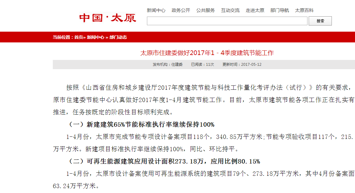 按照《山西省住房和城鄉(xiāng)建設(shè)廳2017年度建筑節(jié)能與科技工作量化考評辦法(試行)》的有關(guān)要求,太原市住建委節(jié)能中心認(rèn)真做好2017年度1-4月建筑節(jié)能工作。目前,太原市建筑節(jié)能各項工作正在扎實有序推進(jìn),任務(wù)按既定的階段性目標(biāo)順利完成。