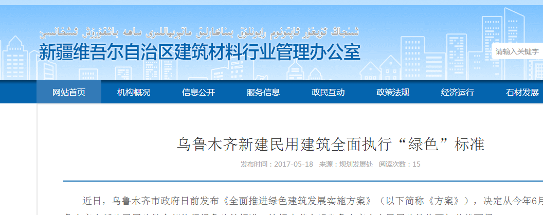 近日,烏魯木齊市政府日前發(fā)布《全面推進(jìn)綠色建筑發(fā)展實(shí)施方案》(以下簡(jiǎn)稱《方案》),決定從今年6月1日起,烏魯木齊市新建民用建筑全部執(zhí)行綠色建筑標(biāo)準(zhǔn)。這標(biāo)志著今后烏魯木齊市市民用建筑將更加節(jié)能環(huán)保。