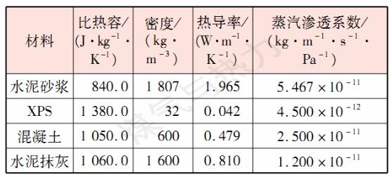 表1 墻體物性參數(shù)