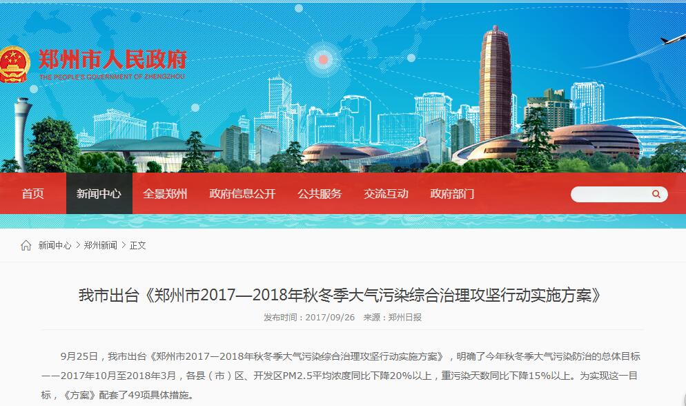 為了配合環(huán)境保護(hù)部、國(guó)家發(fā)展和改革委員會(huì)、工業(yè)和信息化部、公安部、財(cái)政部、住房城鄉(xiāng)建設(shè)部、交通運(yùn)輸部、工商總局、質(zhì)檢總局、國(guó)家能源局十部委聯(lián)合北京市、 天津市、河北省、山西省、山東省、河南省共同發(fā)布《京津冀及周邊地區(qū)2017-2018年秋冬季大氣污染綜合治理攻堅(jiān)行動(dòng)方案》,9月25日,鄭州市出臺(tái)《鄭州市2017—2018年秋冬季大氣污染綜合治理攻堅(jiān)行動(dòng)實(shí)施方案》,明確了2017年秋冬季大氣污染防治的總體目標(biāo)——2017年10月至2018年3月,各縣(市)區(qū)、開(kāi)發(fā)區(qū)PM2.5平均濃度同比下降20%以上,重污染天數(shù)同比下降15%以上。為實(shí)現(xiàn)這一目標(biāo),《方案》配套了49項(xiàng)具體措施,其中,涉及建材行業(yè)的有: